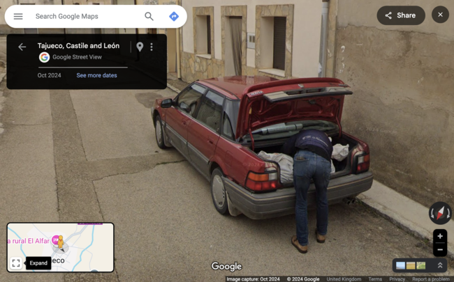 How Google became involved in such a bizarre situation in rural Spain is as astonishing as is surreal. While a Street View car was passing through the small town of Tajueco, it reportedly recorded the man who has now been arrested placing a large bag in the trunk of his car.