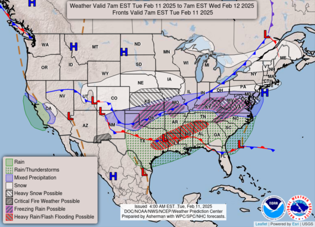 The U.S. will continue to grapple with the onslaught of winter weather this week. Along with winter warnings and advisories, three storms will sweep across both coasts from Tuesday to Sunday. One of them is expected to hit California, which has been recently been scorched by the Los Angeles fires.